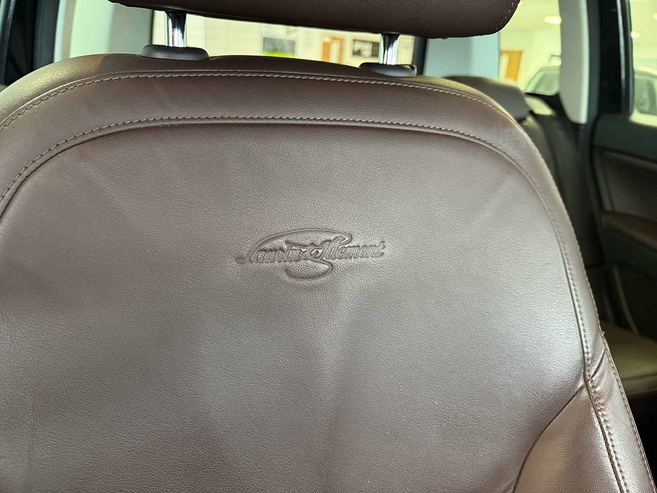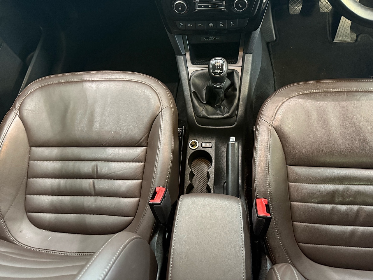 • Brown Leather Front Armrest with Stitching